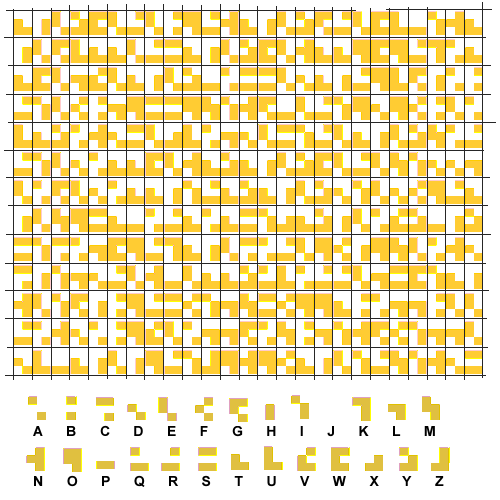 In fact, if you divide the rows into groups of three - the first row of each group will never have anything but the leftmost pixel lit.
