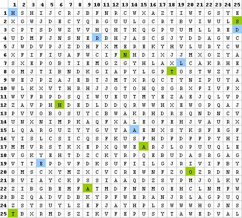 I looked at the lines in the 25x25 grid as setup earlier in the thread.