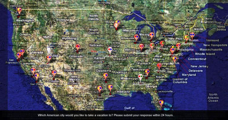 All but L.A. and Lawrence, KS have NFL teams. That seems a little strange. Perhaps this is a "Black Sunday" campaign, similar to The Sum of All Fears where stadiums were targets? (Edit: It has come to my attention that some folks on Wikipedia consider this "stolen" from their site. Seems they are funny that way. I want to set the record straight, a guy who calls himself Sixty-Six is responsible for coming up with this theory. It is not an original thought that developed in my brain at all. Good thing, too, it is a little hokey!)