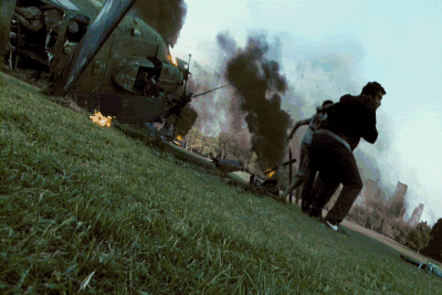 just before this, near the buildings, there are 2 black things that jump. they are small and fast. im pretty sure it has been discussed here before so dont bother trouting me. and searching didnt help. but im pretty sure everyone told him he was crazy, but watching the movie again they are there.