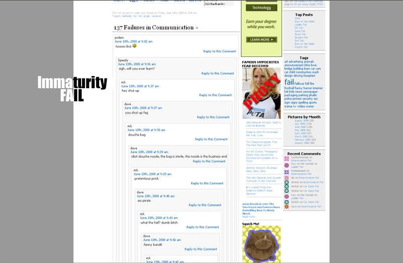 I screen-capped this from a some comments on Failblog.org, the comments there are so childish I had to take a shot: