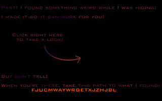 One final word: thank you to all the players of "intimation" for your patience and dedication! Honestly, the story would not have been the same without you. Essy / Naira thanks you for rescuing her from that evil scorpion. As a thank you, here are some more navpaths: AXIZTYNGRDPJUAXN, JQTFCCBKZLJWDCHF, IZYCUZJHHVTNGXJG, CHYMNBAHCJIRUPKH, WMKLCIJYWJGMEAOK, ANULCSWZPHXVUJIM, SXLGLDXLEIPADFRU, YZBBBGTKQUHYFKXU
