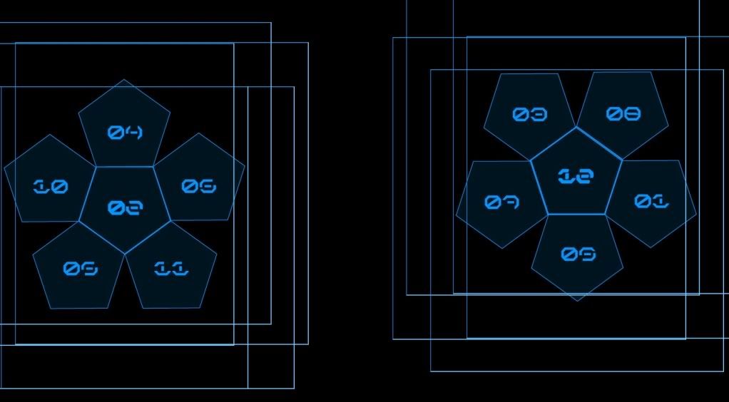 Here are some images of a 12 sided die, all sides shown in both shots. Just for reference