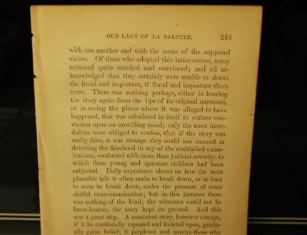 Contents: pages 243-250 torn from a book called "Our Lady of La Salette".