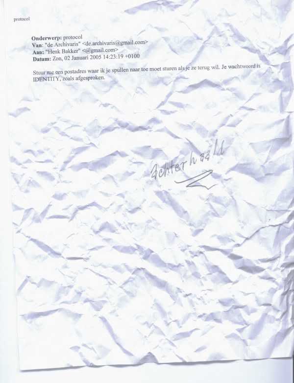 EMAIL2.jpg - an email sent from Henk to de.archivarisSPLATgmail.com (the dutch word for "retrieved" is scribbled across the bottom)