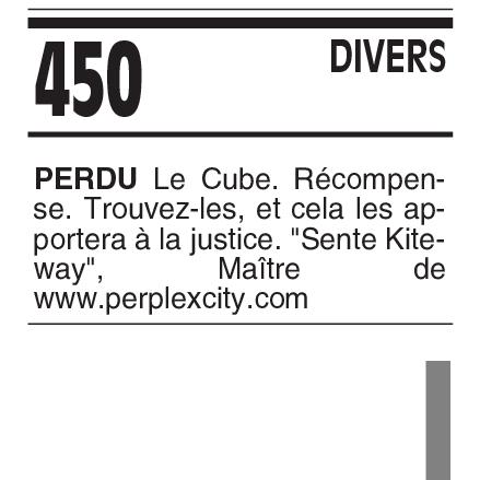 PERDU Le Cube. Récompense. Trouvez-les, et cela les apportera à la justice. "Sente Kiteway", Maître de www.perplexcity.com