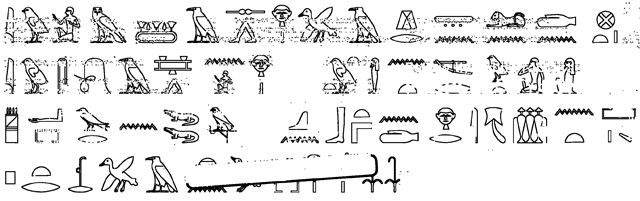 To get there hieroglyphic ball rolling here are the hieroglyphs a bit clearer (and a bit smaller) ...