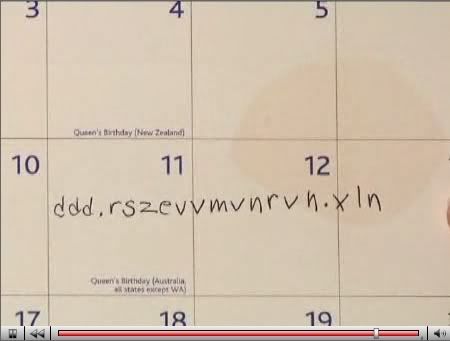 The calendar from the video isn't the same as the one from the picture below it. it doesn't have the holidays, but does have the stain. I took some screen shots.