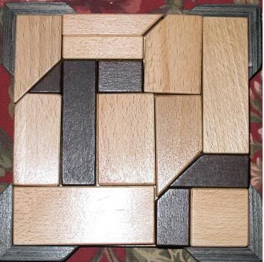 Been awhile since we seriously tackled this one. I was looking at one of cnico's pictures (page 11 or 12) and built that on my Equation. I noticed I could switch 3 blocks to get the small dark corner next to the other dark ones: