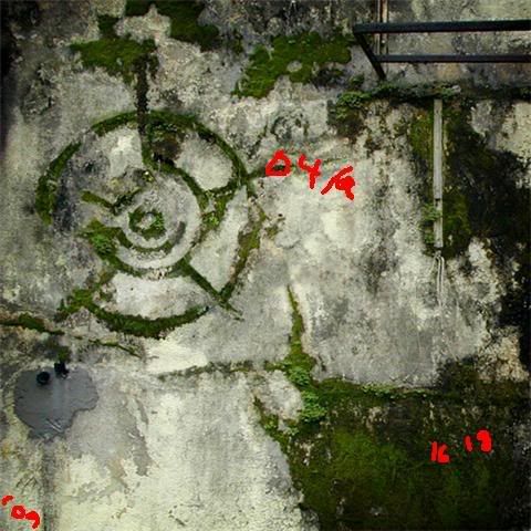 yeah thats it the 2 parts that made me realize were that the green part in the lower right looks like its sloping downward, and the little gray "face" looks like 2 poles that were cemented in the ground and subsequently broken off at the base. What I'm curious about is that if this is in fact an aerial picture, why are there no shadows?