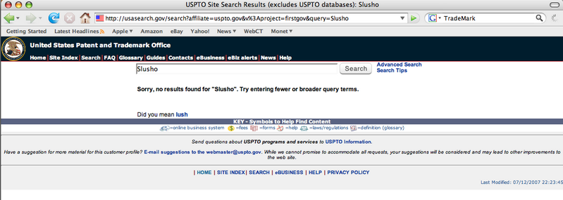 Slusho now has a trademark on the opening page. Is there any way to check a trademark online?