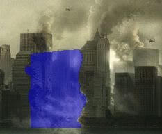 Imagine a monster trying to walk in between the two buildings, scraping its legs against the bottoms of the buildings, having to shift its weight forward and to the side in order to keep moving forward, like a person struggling to walk through mud. But by doing this, it smacks its head aside the Chase Manhattan building for a moment, leaving an impression. This interpretation provides us with a good idea of the size of the monster.