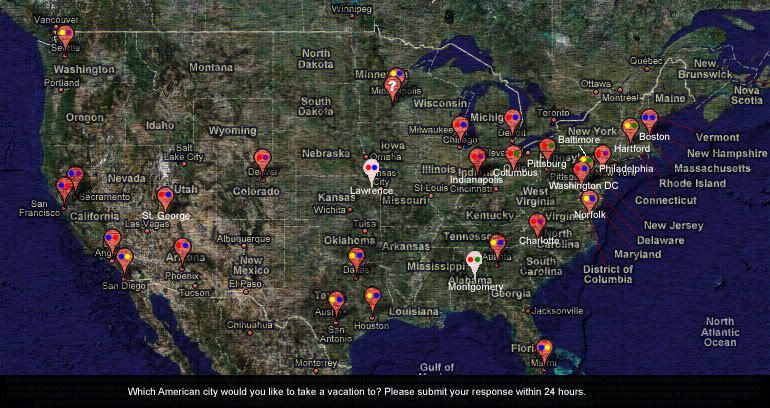 Some of the cities on the list are not marked on the map, including Lawrence Kansas, Montgomery Alabama, and Norfolk Virginia.
