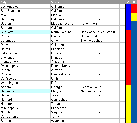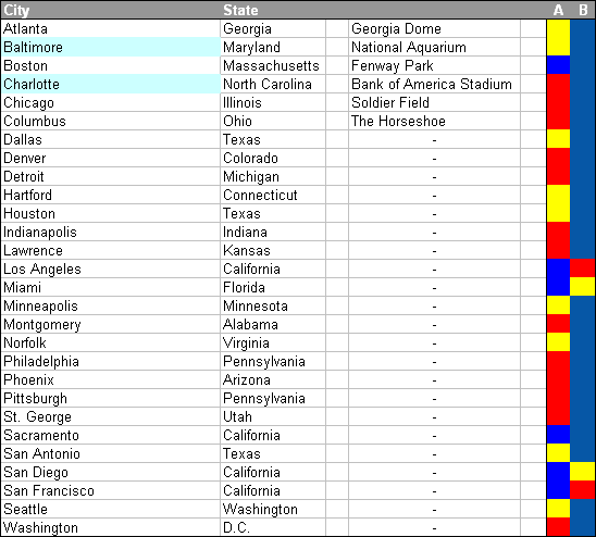 Anyhow, my money is on Boston - only city with a colour match in both colums - unless that's solved now as well Crying or Very sad Rolling Eyes