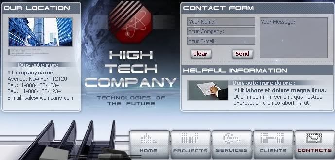 Interestingly enough, if you try to interact with the pages at the sites, you'll find that, just as with the Bold Futura site, you cannot access anything beyond the menu keys. All pages are locked. AND when you click CONTACTS key, it is all fake data; and you can fill in the email info but the SEND button is locked.