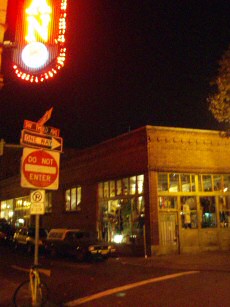 There are a few bars and theaters and stuff in the area of Voodoo but the next line seems to be a completely sexist reference to a clothing shop. Across Burnside is the United Clothing Co. but they don't seem to have any display windows. How about the other direction?