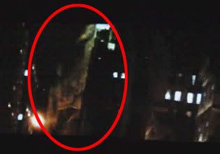 I've circled the area that shows a HUGE figure/object moving behind a building to presumably avoid the military fire (and any chance at a clear glimpse of it). Use the slowed animation below to see it moving to the right, behind the building in front: