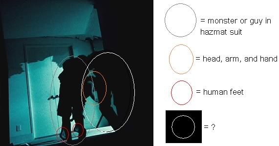 Well, I just got finished watching the new HD trailer, and friends, everything, let me repeat that; EVERYTHING looks perfect. Everything is just, well, clear Smile (finally). And what I thought was once "Master Chief with a wand," is now something else. The wand is now a pair of knobs (thanks to whoever pointed that out way before the HD trailer came out). I noticed something in the screencap I took. Is it just me, or is there a body hanging? By the way, this looks a lot like the door that Rob and Lily/Beth (forgot the name) were holding back. Just my thoughts, though.
