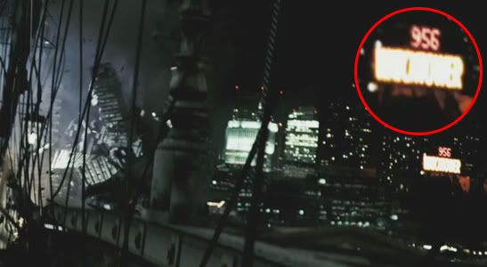 Here's a clock showing the time of 9:56pm (enlarged for clarity) when the bridge is destroyed. Mistake or intentional? It is an address? I'm not familiar with the Watchtower building, so if it's nothing, my bad.