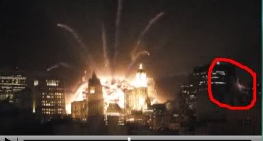 Spotted a second explosion next to the larger explosion. I think it's just one of the projectiles hitting the building: