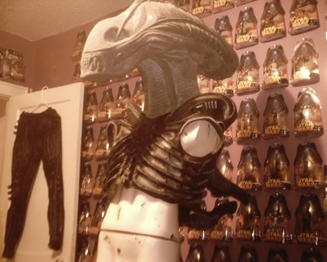 The cast them off an "Aliens" stunt suit in all latex. I had to put it together and paint it. Here's some pics: