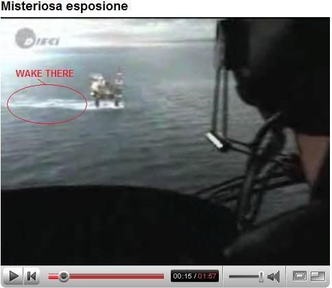 so anyone look at the spanish clip in the first 20 seconds and notice the shots fired from the oil rig into the water, and how the water looked around the oil rig?