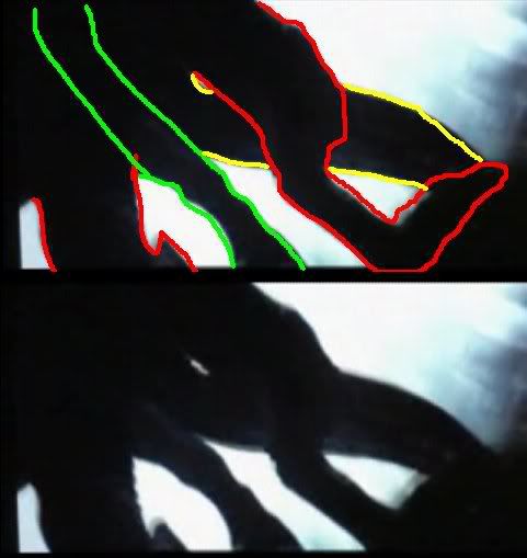 one reason i drew the legs as long as i did... they actually look fairly long as the camera pans up the monster. If you can find a video that Paramount hasnt snagged on youtube, watch it over, and look VERY CAREFULLY for the leg shape... imma take a screenshot and outline the leg real quick.