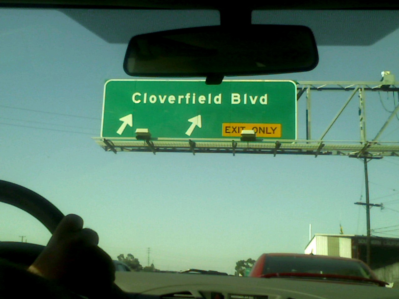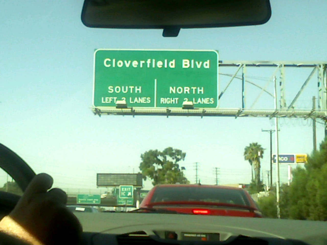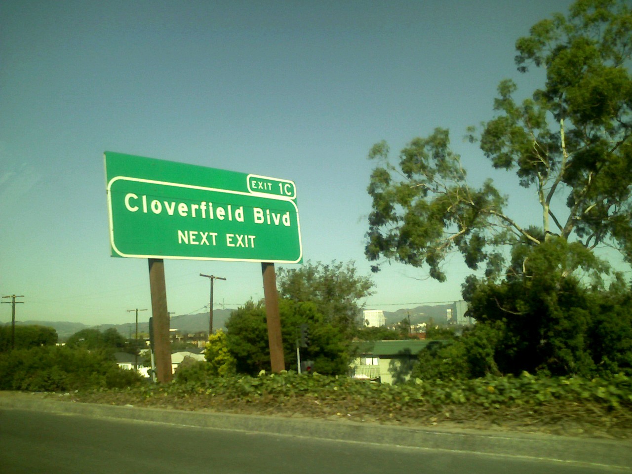 Cloverfield Blvd exit sign in Santa Monica, CA heading westbound on I-10. Taken 09 Oct 2007 w/ a Samsung Blackjack.