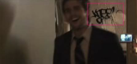 Rob also leaned up on an eye catching piece of graffiti during the scene where he realizes that his phone is dead, right before he runs into the electronics store.