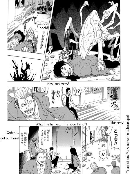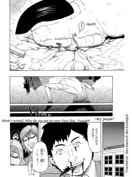 ^ The guy either got bit and didn't notice (._.) or, as he's talking, he gets hit (kinda hard to portray in a comic, ja?)