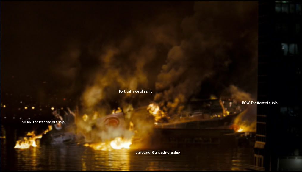 lol read the rest of the topic. what i was trying to say is the reason that its on fire now and not just capsizing is because it looks as if MGP threw it onto the harbor, and that the explosion was so big was just for theatrical purposes. In the news cast the reporter says that a tanker has capsized in the bay near the SoL. Not a taker has capsized in the peir/docks/harbour.