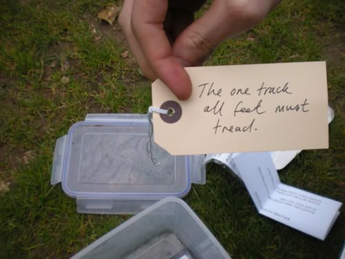 By the way, wiki and topic-editing people, could you please put a big note somewhere that says, "If retrieving a shard, bring a tape recorder." It was really really nice of Hazel to lend us hers.