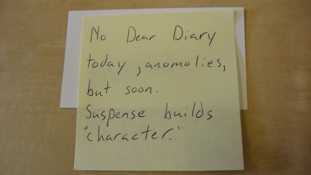 Success! Ten was waiting for me in the expected location (the steps behind EMPSFM), right on time. We received a business card and two color photos, all with post-it notes attached to them. I had a friend with me to snap some photos, and had a voice recorder hidden in my pocket. I'll transcribe or post the voice file later this evening, as well as deliver some legit scans, which we are definitely going to need.