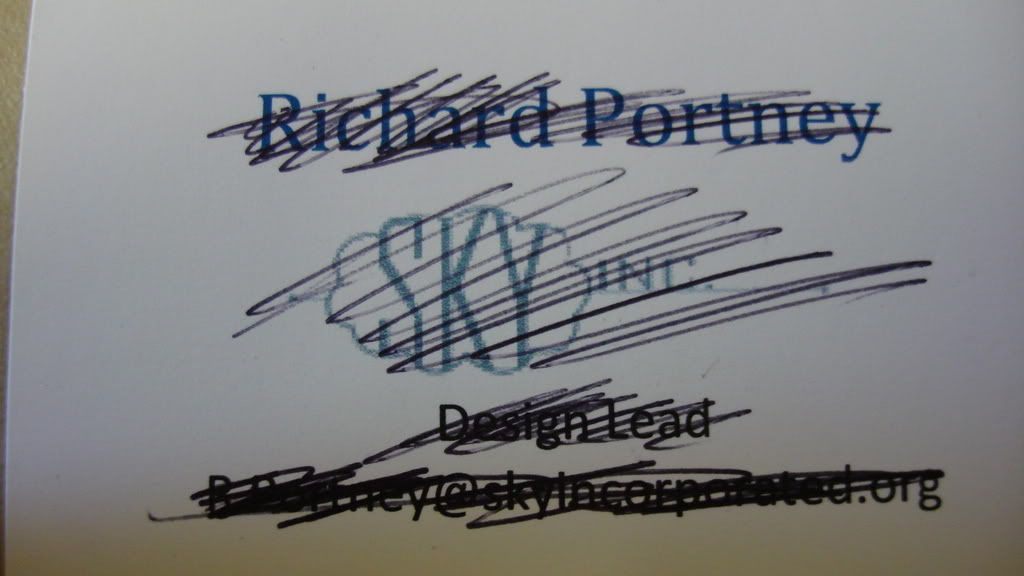 EDIT: Both R.Portney and RPortney at skyincorporated.org are invalid. So are a few other variations I tried. I'd guess the fact that the info on the card is scratched out means Mr. Portney is no longer employed there, and no longer has his corporate e-mail address.