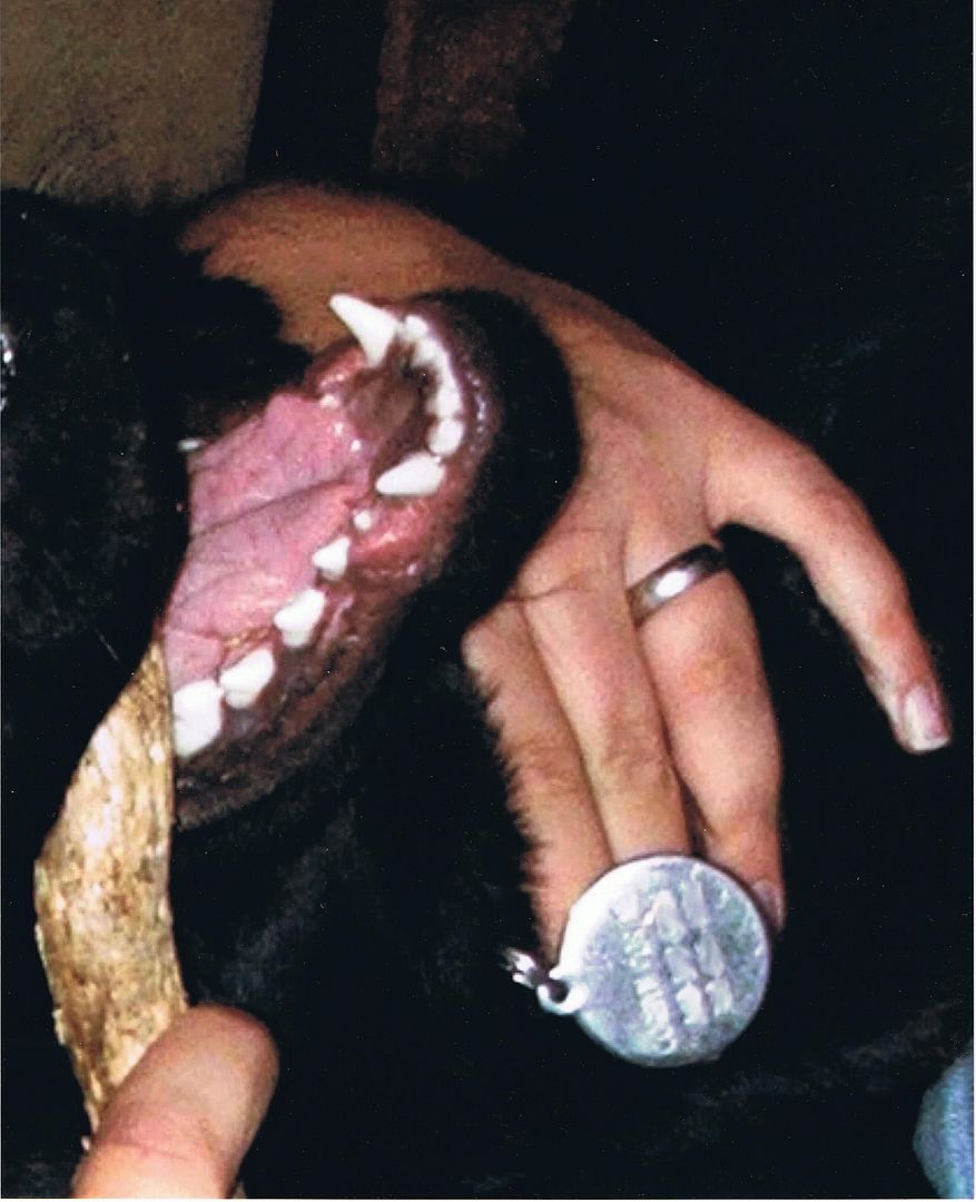 Ten indicated that we needed to figure out what dog's tag says. So far all I've been able to make out is the first word, which is*maybe* "Corbin"...