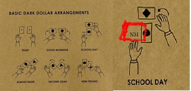 I'm not sure if anyone has talked about this at all. I haven't really had time to read through the 20 something pages, but has anyone noticed the "NM" above the left hand in "School Day" under the Dark Dollar Arrangement section of the "A Reasonable Haven" proof?