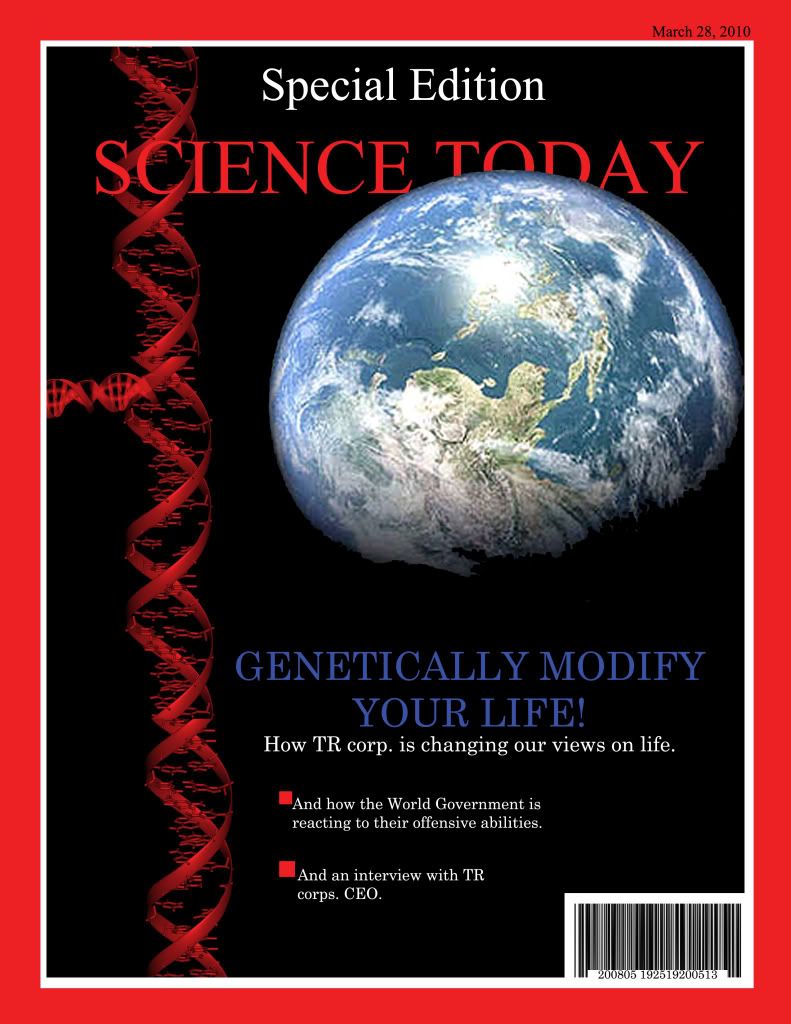 --On the cover itself, it looks a pretty basic thing. Just bland text with an image of earth over it, and a pretty badly put together double-helix. Its dated March 28th, 2010. That's a little under a year ahead of us, 3 years ago for them.