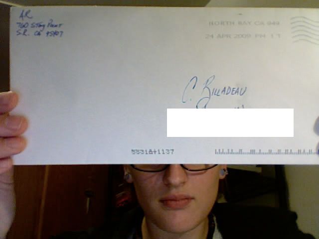 (There is nothing really else to note except the return address is for a Starbucks corporate headquarters in Santa Rosa, lol. That, and Rage has pretty handwriting. It is VERY similar to Port's handwriting in the book, in my opinion.)