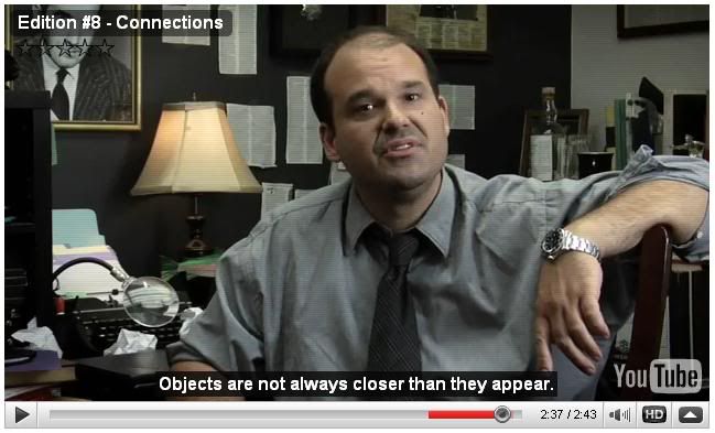 Here is a new twist to consider for solving the background photo. The earlier update clips from "Oscar" were designed to help out those that had not yet discovered the link between the Stories From the Mosaic and the "encrypted" file on TH. Lately though, Oscar's messages have started ending with what look to be subtle hints about the endgame perhaps. I've done a few screen grabs with the CC on so I'll just post those for the group to consider. It's as if clip #8 was "talking" to me and others that the photo is not a close-up of a chess piece. My current thinking of a black knight (or if thought of as the subtitle of David S. Goyer's last project he co-wrote called "The Dark Knight") can't be correct if Oscar's message that "objects are not always closer that they appear" is in context to the photo at the TH/E site.