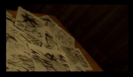 I would also like to point out that just below the unidentified text in the third shot, it appears he wrote 'END ME'