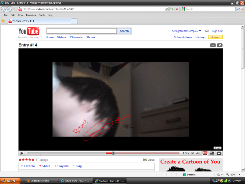 Shat brix. No jk. Slender man inviting himself intp the house and INTO THE ROOM was scary enough, but the bloody alex was just waaaay out there - this suggests that slender man is more than willing to harm people (there goes my philosphy of "If I see him, i'll pounce the lanky bastard"). So i'm confused, is the tape chronological? In the night slender man came in, ripped Alex's head up, or is it Alex set up the camera while bloody, then left it and slender came back later?