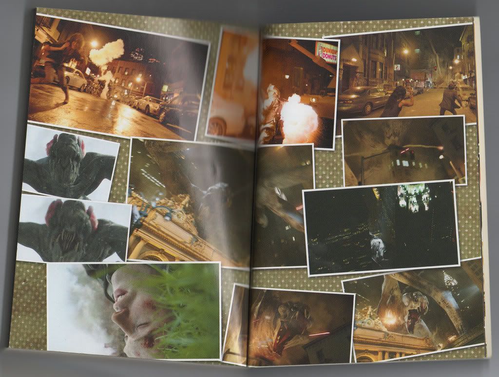 Well, let's open the book. After the classic Cloverfield poster on the first page there are many colored images from the movie. I suppose, we know all of them, so I won't post them here. Just one example for main comprehension (I intentionally didn't scan it properly, due of some paranoic copyright fears Wink ):