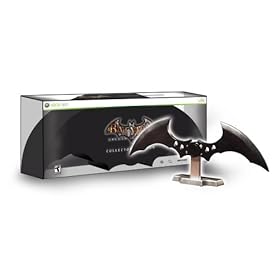 as for what's near the door, i have no clue. it doesn't look like the video game as whatever it is is too big and doesn't look like the cover. doesn't look like the collector's edition either as it's supposed to be a big rectangular box, mostly white with a big black bat symbol on it.