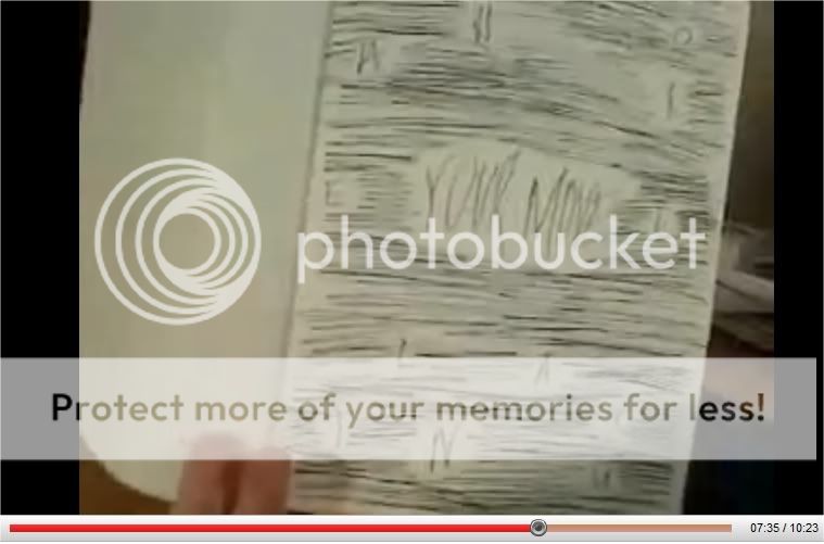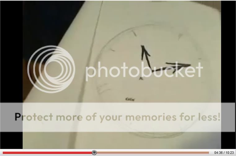 The picture of SM's tentacles drawn by Matt was edited by (probably) Logan to include a slash across the face, but looking at it this time, I noticed it looks like there are two marks made by Logan there, and together they look almost like clock hands. [image]
