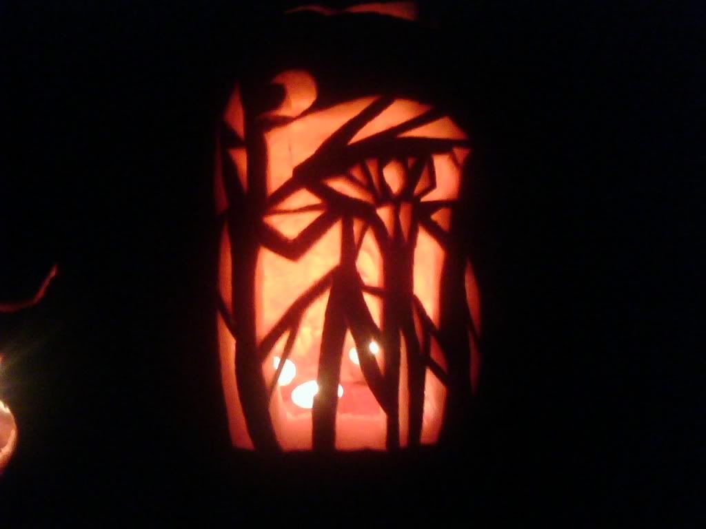 I carved this tonight for Halloween. A lady in my neighborhood asked me if there was supposed to be a person in it or just creepy trees:)