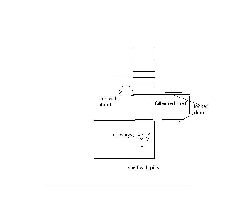 Also note that its a front door; you can clearly see the deadbolt and chain. This corresponds to the beginning of Entry 18 when J tries the locked front door whose handle is on the R externally (which would be the L internally).