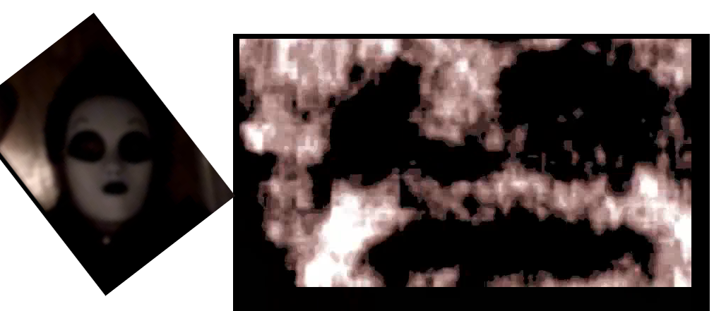 One, at the end of 22's footage of the basement area we see a static-like face. Now look at the mask.