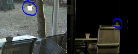 There is a latern shown in the second half of the video, sitting opposite the chairs. I think this is the small object we can see moving at the end of video #1, possibly swaying in the wind?