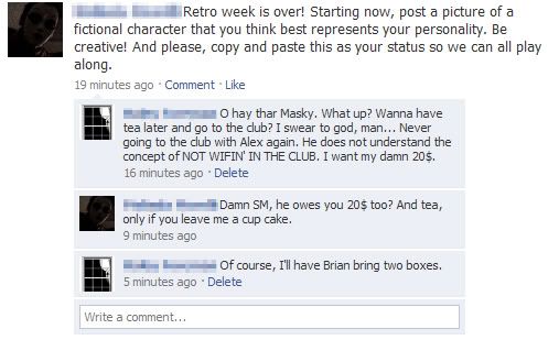 You know you watch too much MH when you find yourself doing this on Facebook with your friends...