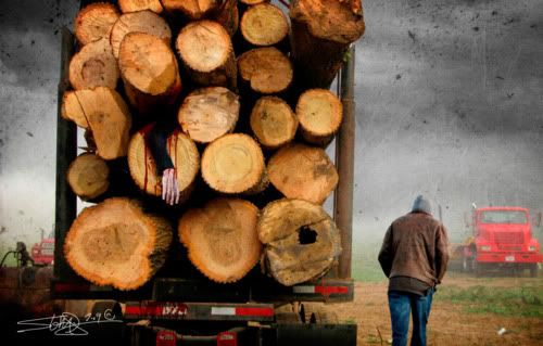 I have no idea what the artists original intentions were--but my mind IMMEDIATELY conjured up some lumberjack going about his day cutting down timber--and there's our Ol' Pal Slendy--just chillin' and blending in when all of a sudden.... O_o